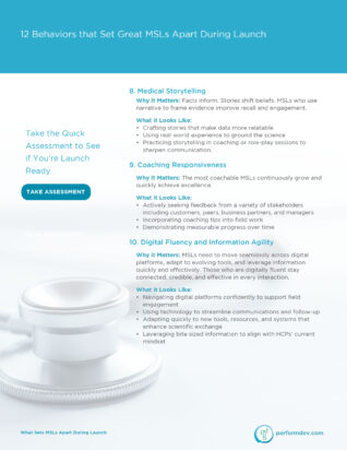 Empower your MSL team to drive results at every launch stage with insights from industry-leading life science experts, Performance Development Group. After downloading, complete the self-assessment to identify your launch phase.